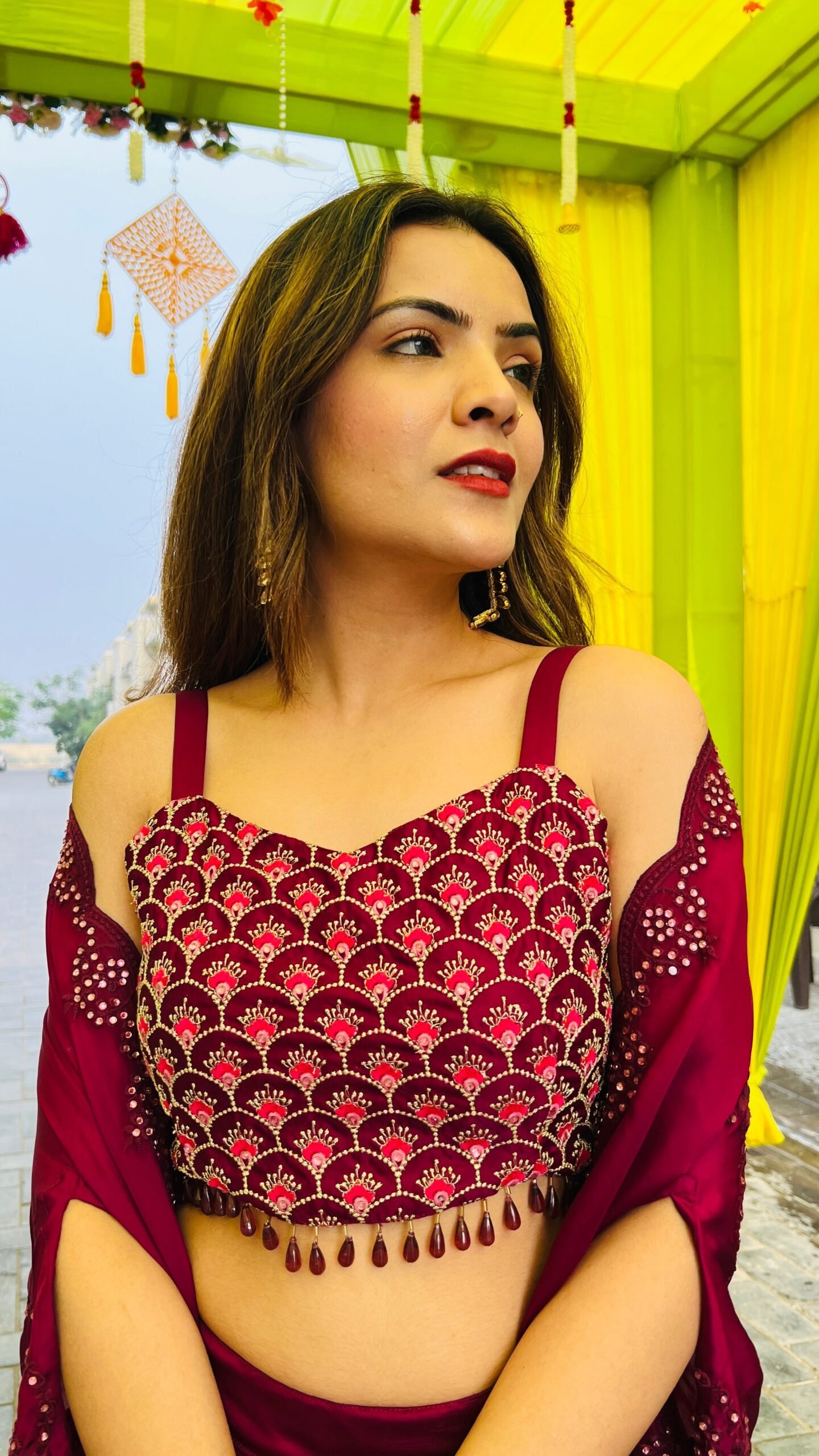 READY TO WEAR 3pcs SARONG DRESS,TOP AND SHARUG EMBELLISHED WITH ZARI RESHAM AND KUNDAN WORK CHOLI AND SHARUG,PADDED CHOLI