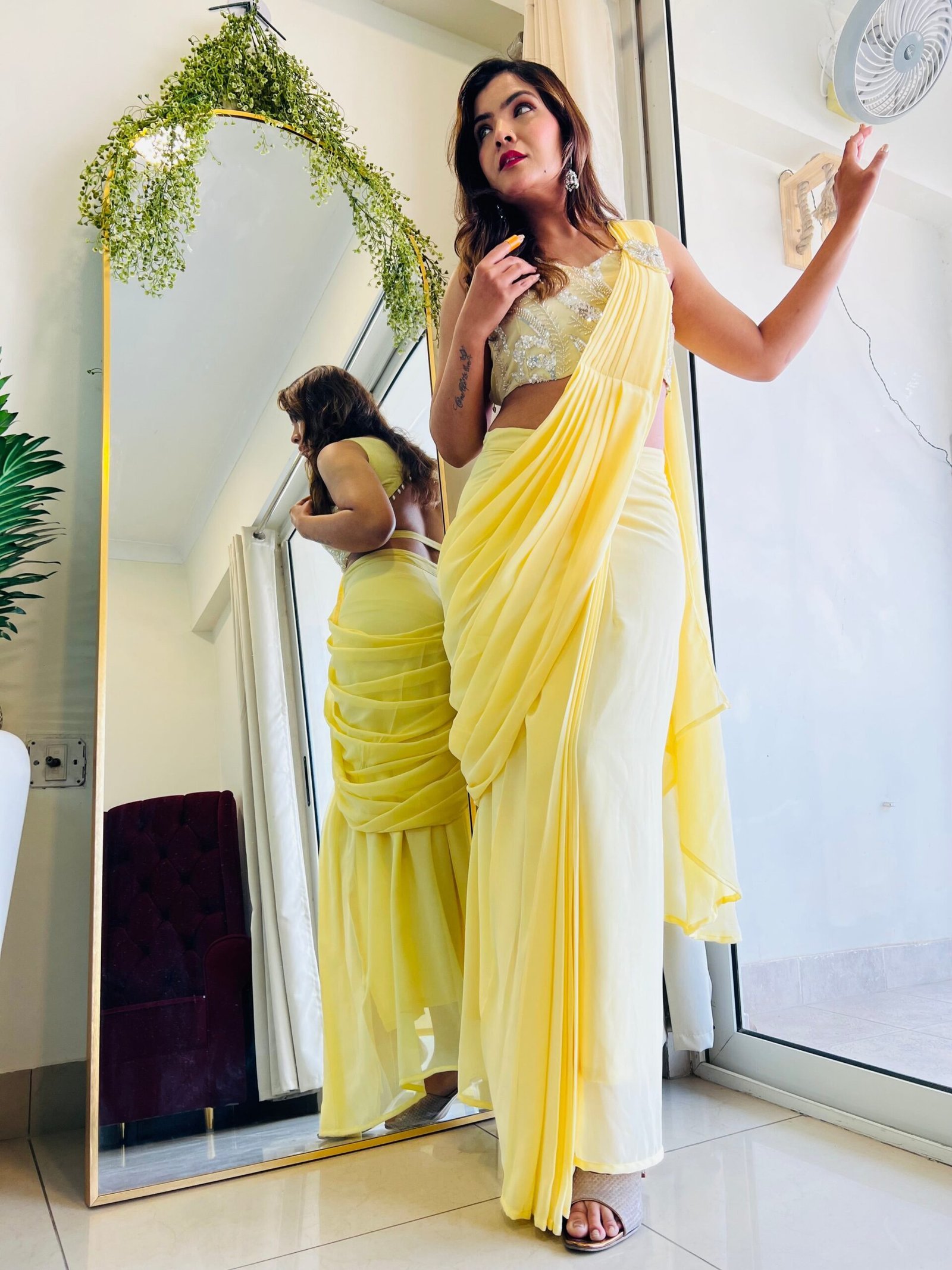 Be the first to review “Lime yellow Ready to wear Designer saree”