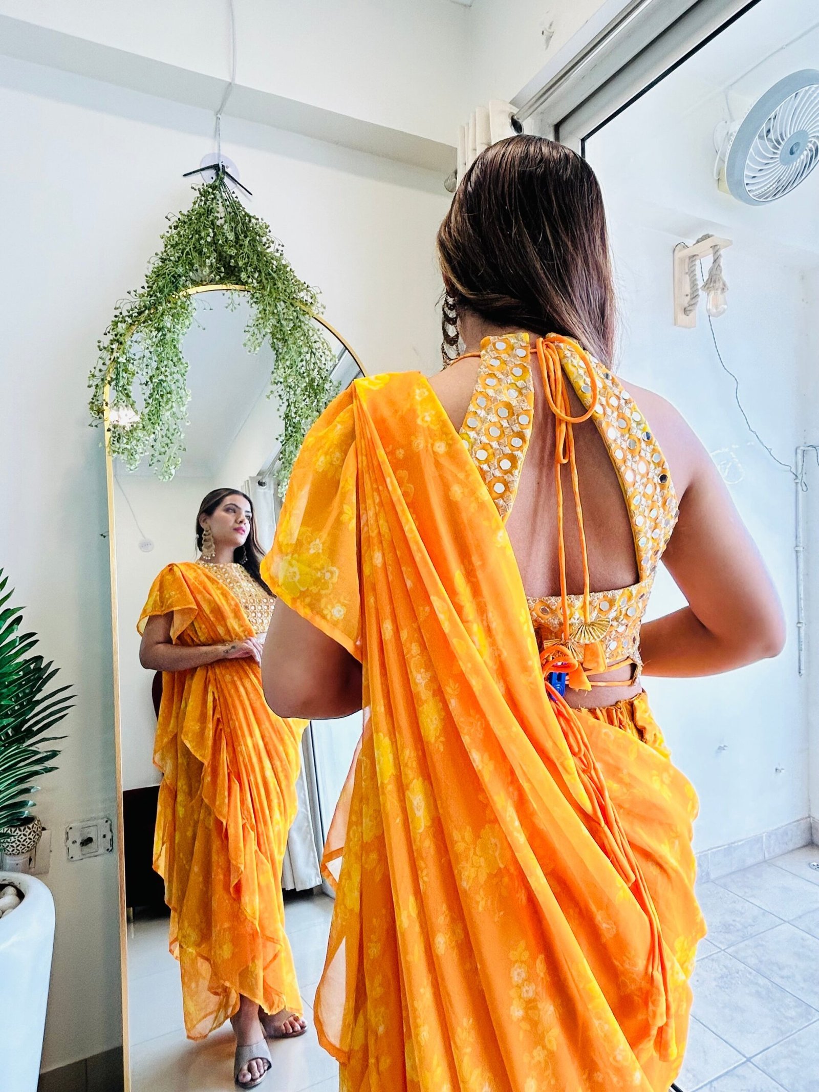 Ready to Wear floral Designer Yellow Saree for women perfect haldi dress for haldi function , wear as haldi outfit